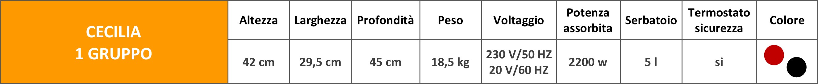 Cecilia è una macchina per caffè a cialde professionale dall’ingombro ridotto e dalla massima efficienza. Monta una caldaia di ben 3 litri e mezzo, il che costituisce una forte riduzione dei consumi energetici. È dotata di tre interruttori generali (erogazione caffè, produzione di vapore/acqua calda, piano scalda tazze) che possono essere attivati a piacere in modo da ottimizzare i consumi. Trattandosi di una macchina a cialde in carta, non necessita di macinino e può dunque essere collocata anche in spazi ridotti. Facilissima da usare, consente di impostare in modalità automatica la durata dell’erogazione (tasti: caffè lungo, caffè ristretto o funzione manuale).